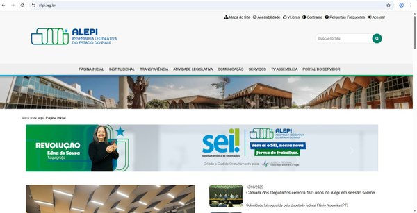 Passo 1: Entre no site institucional da Assembleia Legislativa do Piauí pelo link al.pi.leg.br