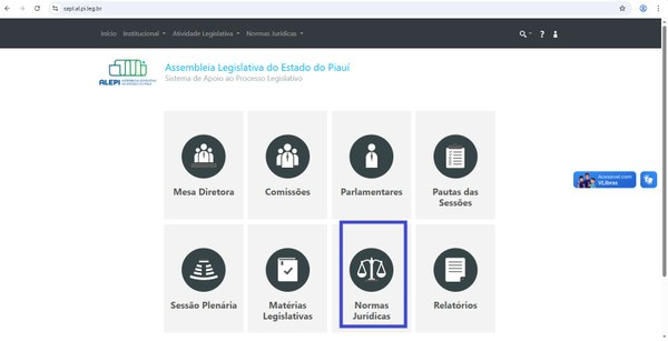 Passo 4: Clique na opção “Normas Jurídicas”