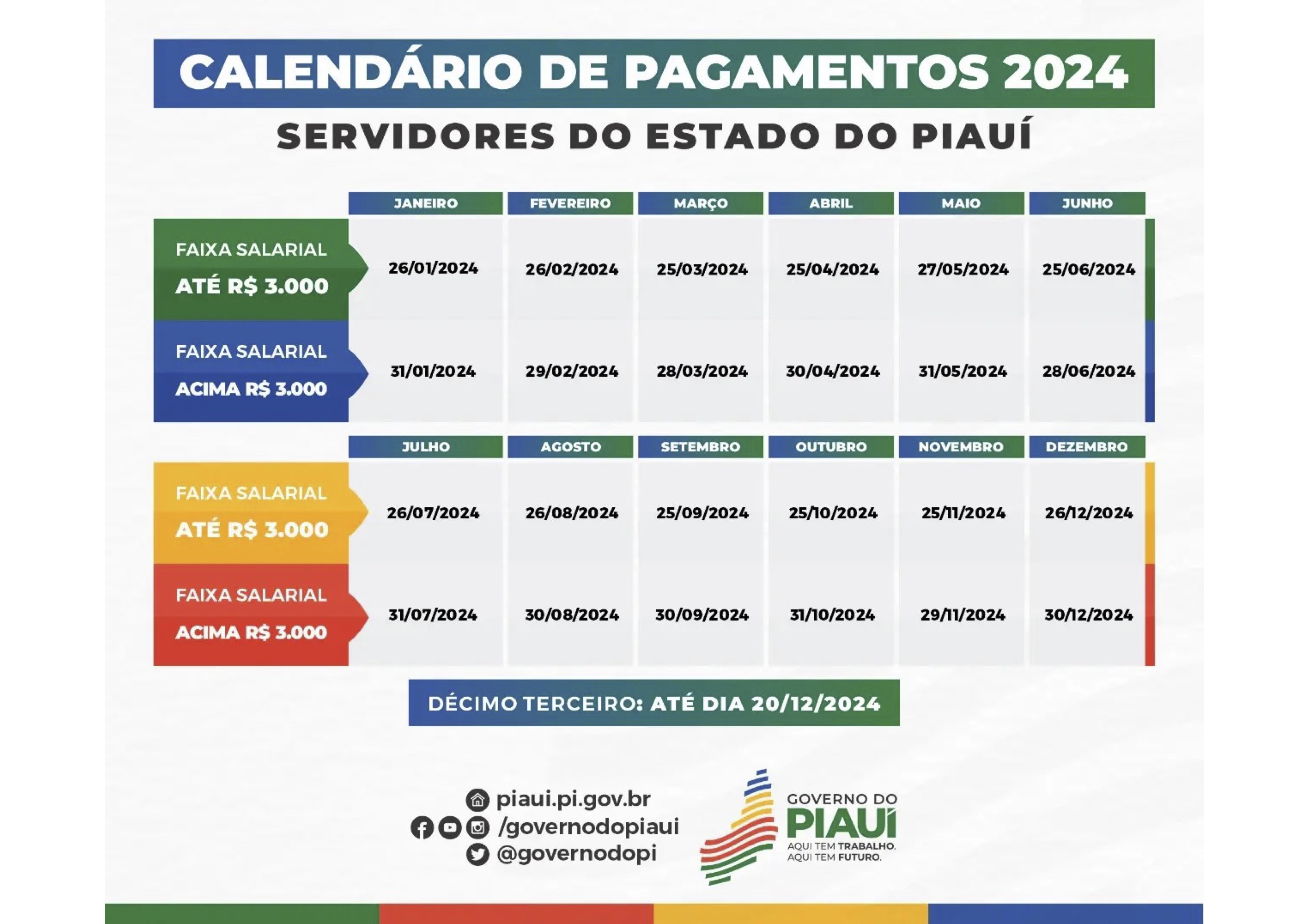Seu benefício será pago de acordo com a tabela de pagamento do estado, conforme calendário abaixo.